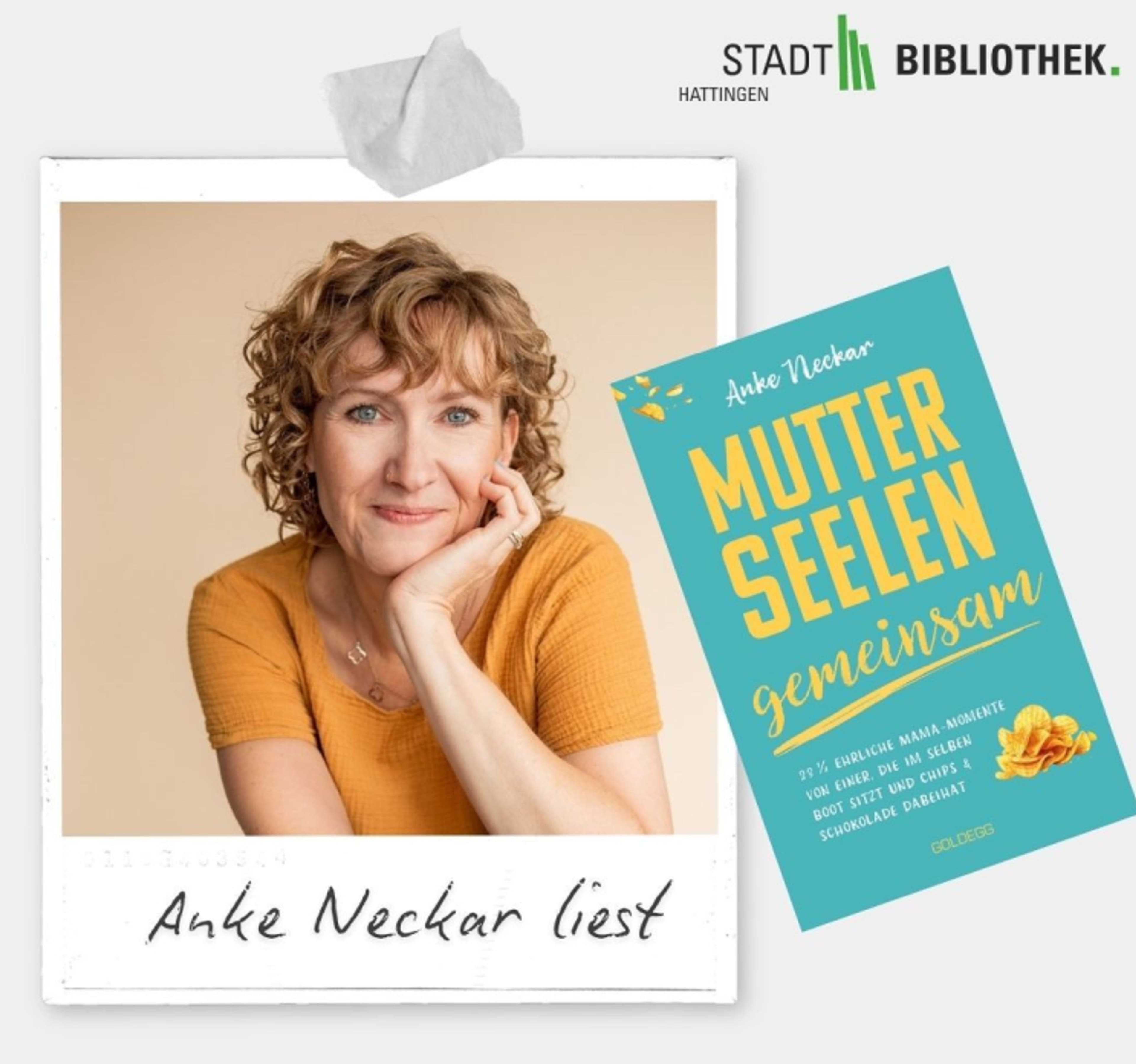 Autorin und Influencerin prĂ€sentiert am 14. November ihr Buch âMUTTERSEELENgemeinsamâ in der StadtbibliothekAm Freitag, den 14. November, lĂ€dt die Stadtbibliothek Hattingen um 19:30 Uhr zu einer Lesung mit Autorin und Influencerin Anke Neckar ein. Sie prĂ€sentiert ihr Buch "MUTTERSEELENgemeinsam" mit humorvollen und ehrlichen Einblicken in den Alltag von MĂŒttern. Die Veranstaltung kostet 10 Euro (ermĂ€Ăigt 7 Euro), Tickets sind vor Ort oder online erhĂ€ltlich.