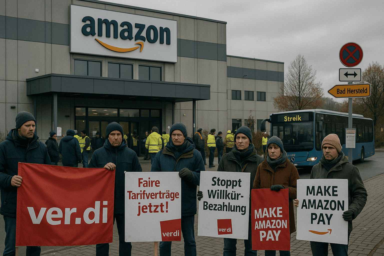 Die Beschäftigten der Amazon-Fulfillment-Center in mehreren deutschen Städten sowie Mitarbeiter von SportScheck Stationär treten am 28. November 2025 in einen Streik, um bessere Tarifverträge und Arbeitsbedingungen durchzusetzen. Die Gewerkschaft ver.di kritisiert insbesondere die hohe Arbeitsverdichtung, Überwachung und unfaire Bezahlung an den umsatzstarken Verkaufstagen. Mit ihren Protesten unter dem Motto „Make Amazon Pay“ fordern sie nachhaltige Verbesserungen, da die bisherigen Verhandlungen, etwa bei SportScheck, gescheitert sind.