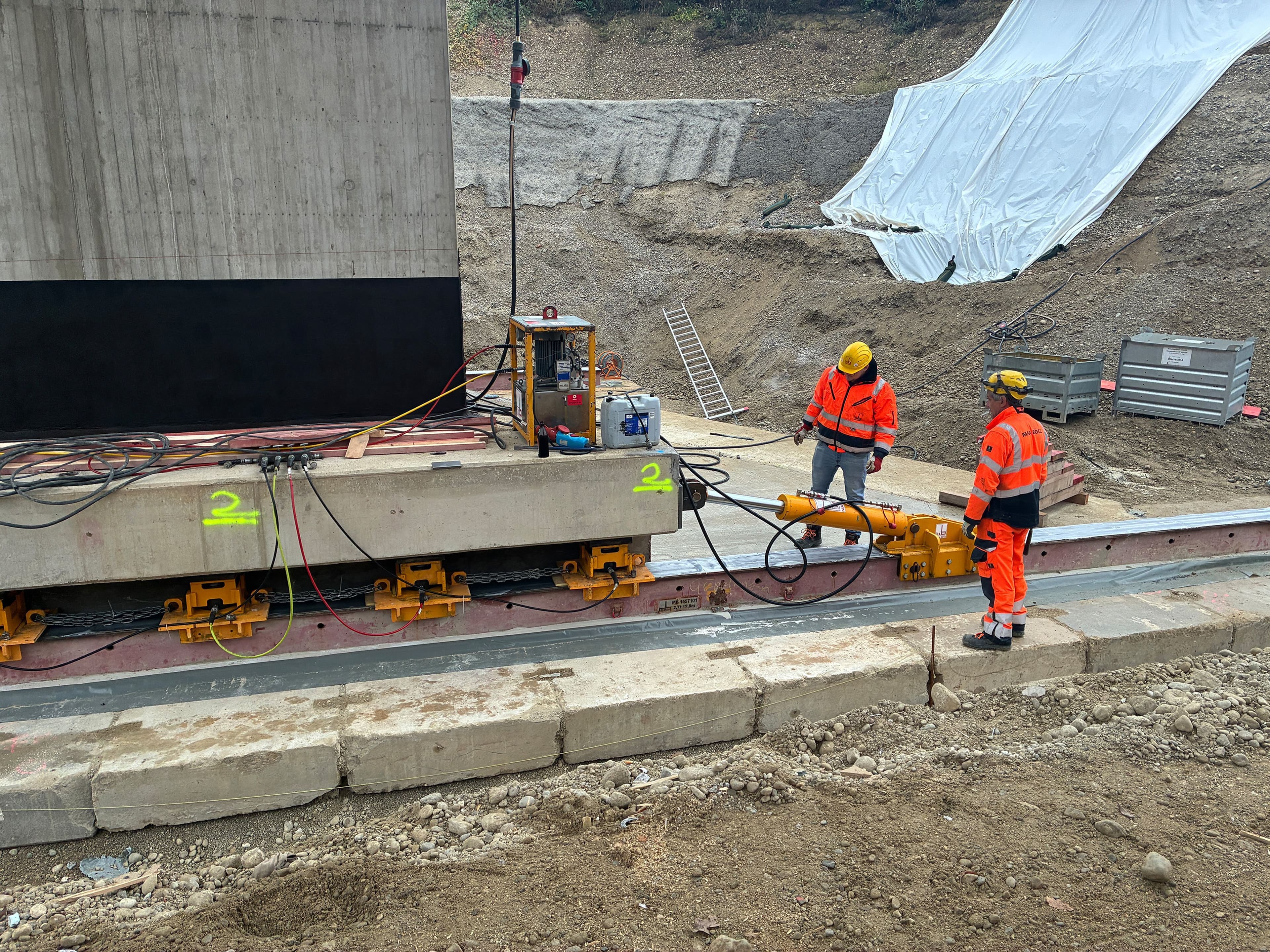 2.300 Tonnen Bauwerk auf Teflon-Lagern verschoben – Bahnstrecke nach 20 Minuten wieder freiFortschritt bei Umbau der Pürtener Kreuzung
