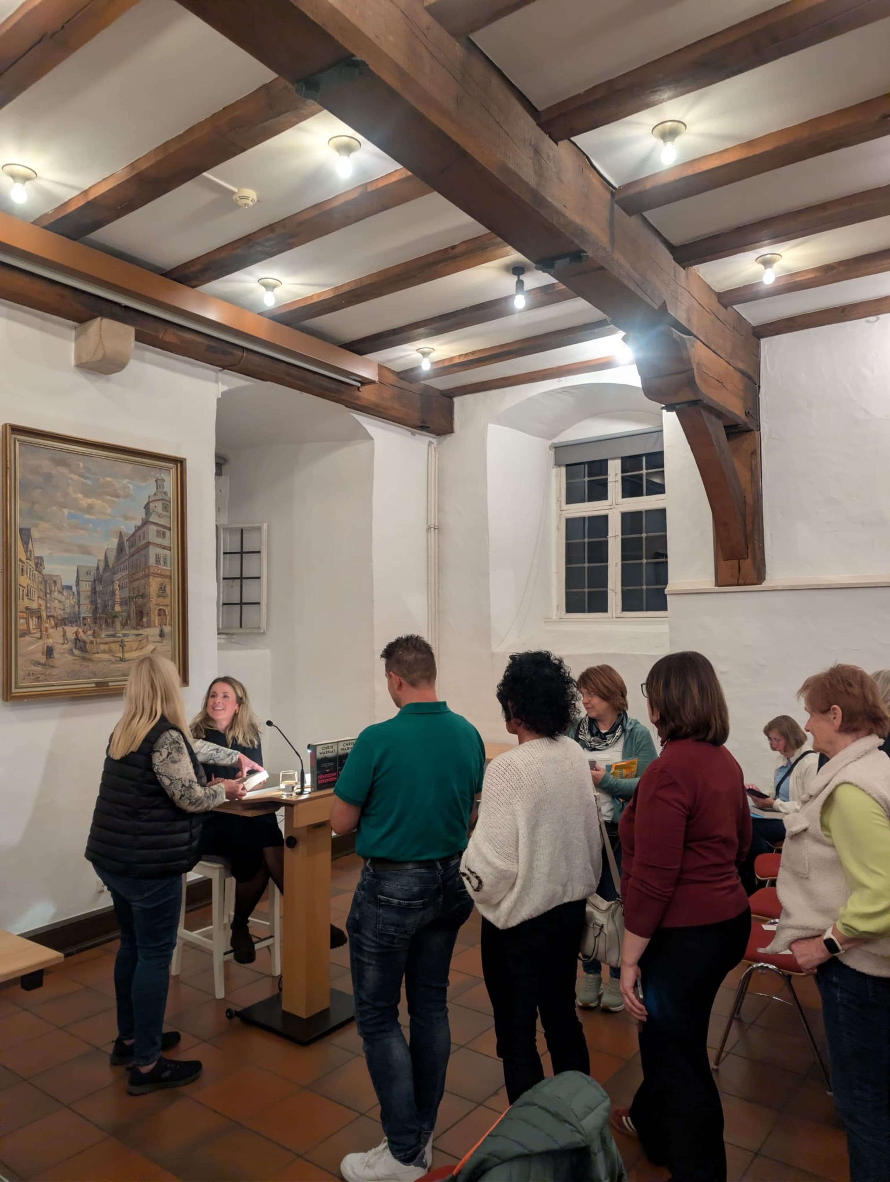 Am 23. Oktober 2025 präsentierte Chris Warnat in der Hohen Schule Herborn ihren Thriller „15 Sekunden“ vor rund 80 Gästen. Die Lesung, organisiert von Buchhandlung Baumann und der Stadtbücherei Herborn, ermöglichte einen Einblick in die Entstehungsgeschichte des Romans und die Übergänge von Warnats journalistischer Laufbahn zur Belletristik.