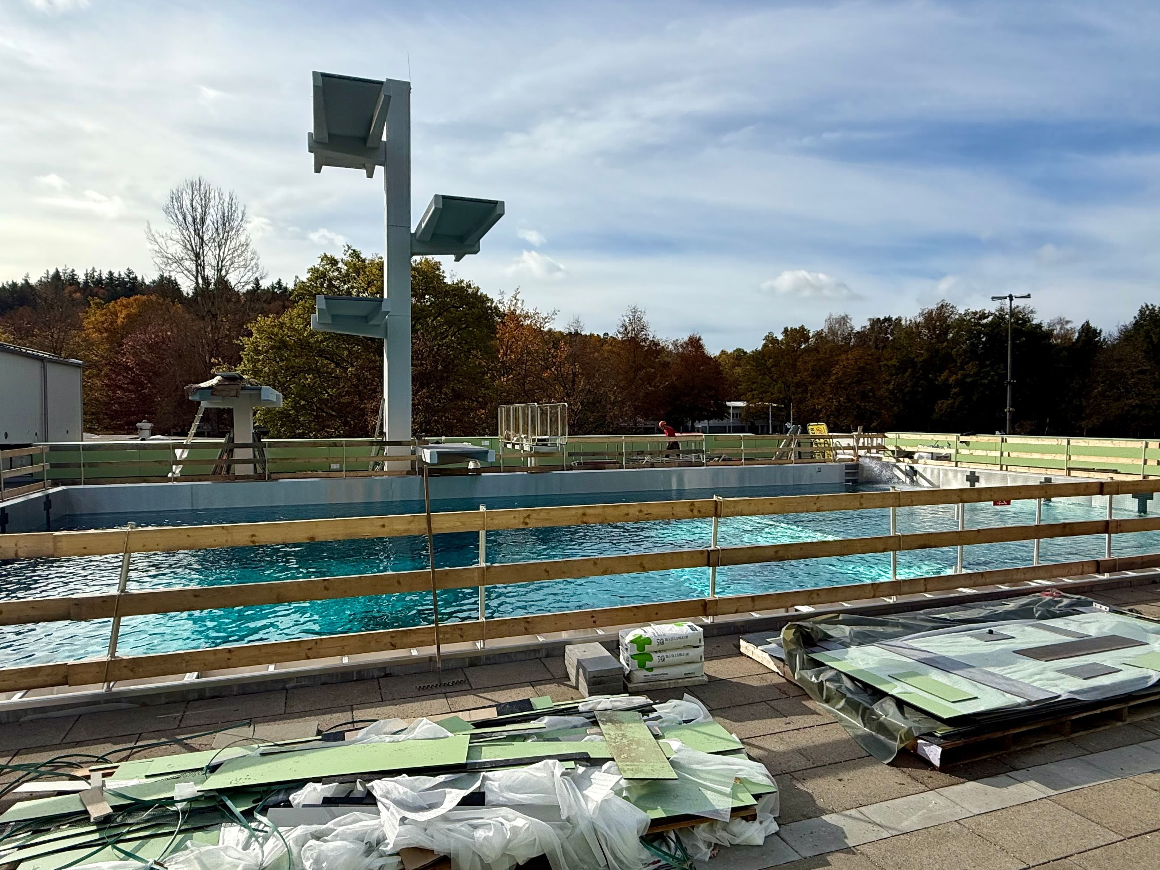 Edelstahlauskleidung im Springerbecken installiert – Fertigstellung zur Badesaison 2026 geplantIm Warmfreibad Kaiserslautern wurde die Edelstahlauskleidung des Springerbeckens erfolgreich installiert und das Becken wird aktuell zur Dichtigkeitsprüfung wieder befüllt. Die Sanierung liegt im Zeit- und Kostenplan, sodass Becken und Sprungturm zur Badesaison 2026 in neuem Zustand bereitstehen sollen. Nach Abschluss der Prüfung folgen letzte Arbeiten am Beckenumgang und am Sprungturm.