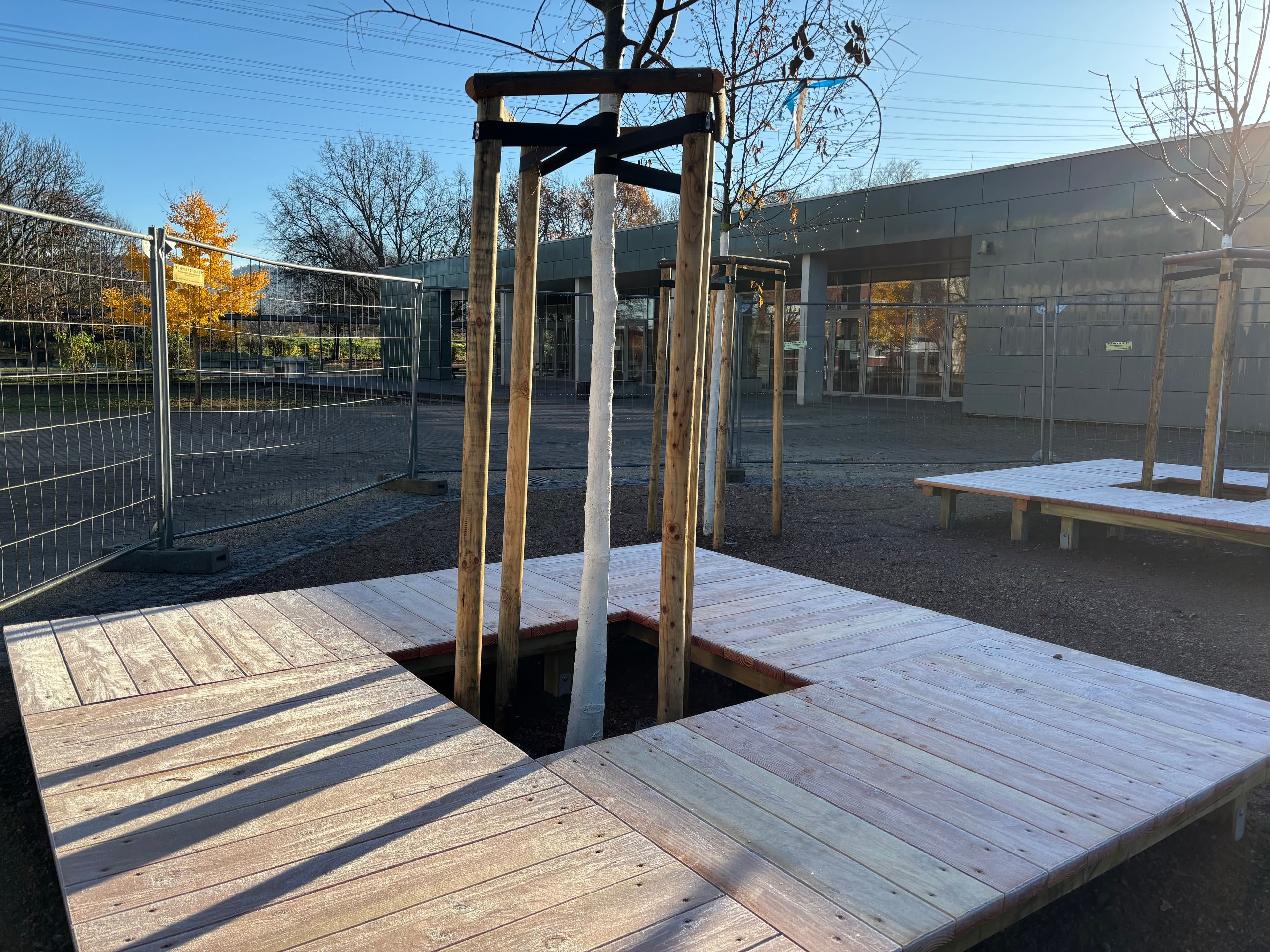 Modernisierung mit Bäumen, Sportgeräten und verbesserter Klimaresilienz bis JahresendeDie Konrad-Adenauer-Grundschule in Offenburg modernisiert ihren Schulhof mit Fokus auf mehr Grün, Klimaresilienz und Bewegungsangebote. Zehn neue Bäume und naturnahe Flächen verbessern Mikroklima und Regenwasserversickerung, während Sportgeräte wie eine Klimmzugstation und Tischtennisplatte Pausen aktiv gestalten.