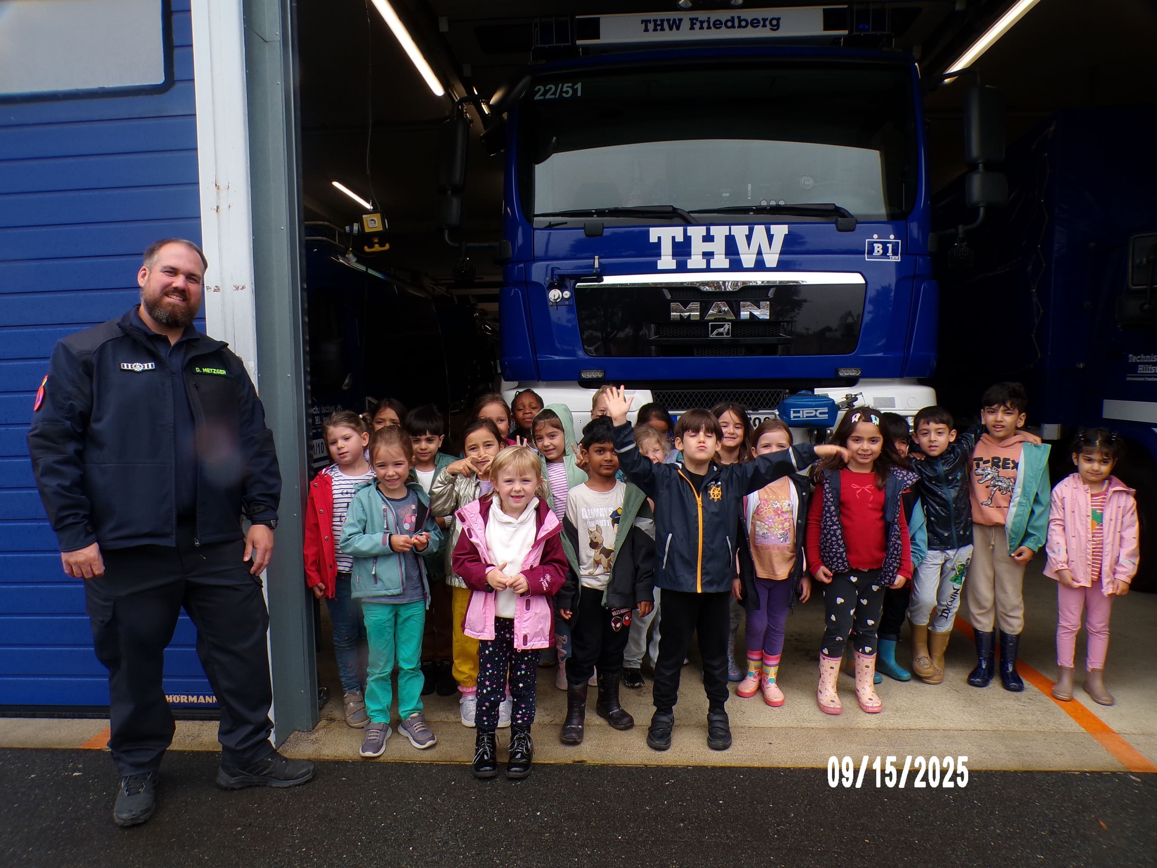Die Vorschulkinder der Kita Farbklecks aus Fauerbach besuchten das THW am Standort Friedberg und erhielten einen praxisnahen Einblick in dessen Aufgaben. Sie bestaunten Einsatzfahrzeuge, erkundeten Ausrüstungsgegenstände und lernten Maßnahmen wie den Hochwasserschutz kennen. Der Ausflug vermittelte spielerisch Wissen über ehrenamtliches Engagement und hinterließ bei den Kindern bleibende Eindrücke.