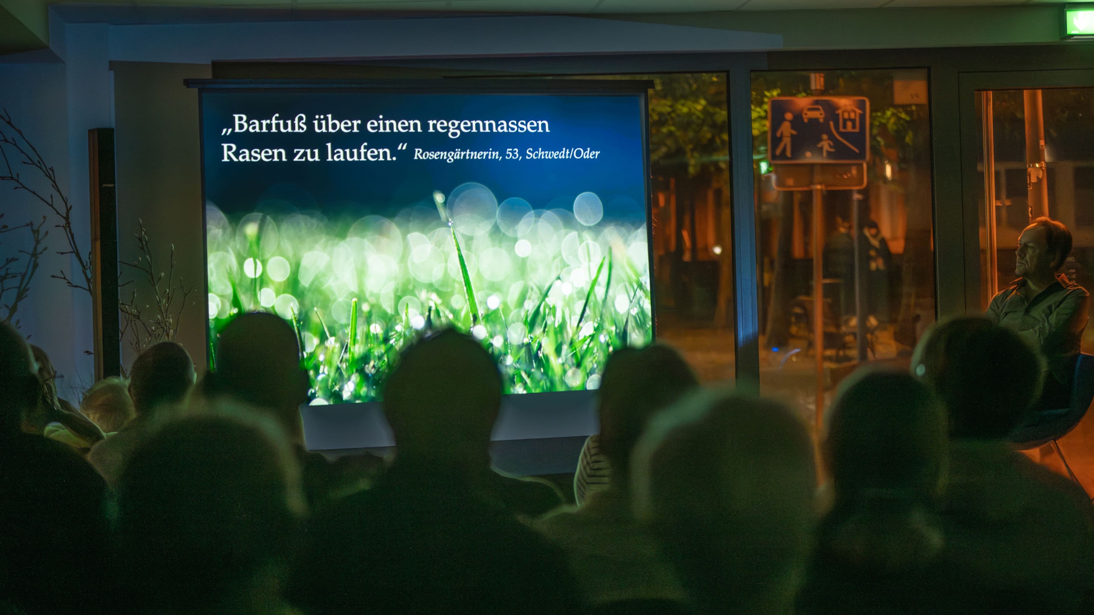 Mit seinem Programm „Eintausendmal Lebensglück“ präsentierte Christof Jauernig Einsichten aus über 1.000 persönlichen Glückserfahrungen aus 60 deutschen Städten. Er betonte, dass persönliches Glück vor allem in kleinen, alltäglichen Momenten liegt und jeder individuelle Wege zum Glück finden muss.