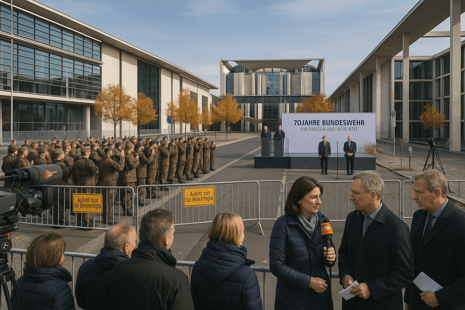 Am 12. November 2025 feiert die Bundeswehr ihr 70-jähriges Bestehen mit einem öffentlichen Gelöbnis zwischen Bundeskanzleramt und Paul-Löbe-Haus in Berlin. Bundesverteidigungsminister Boris Pistorius und Bundespräsident Frank-Walter Steinmeier halten die Schlüsselreden; ZDF überträgt ab 13:50 Uhr live.