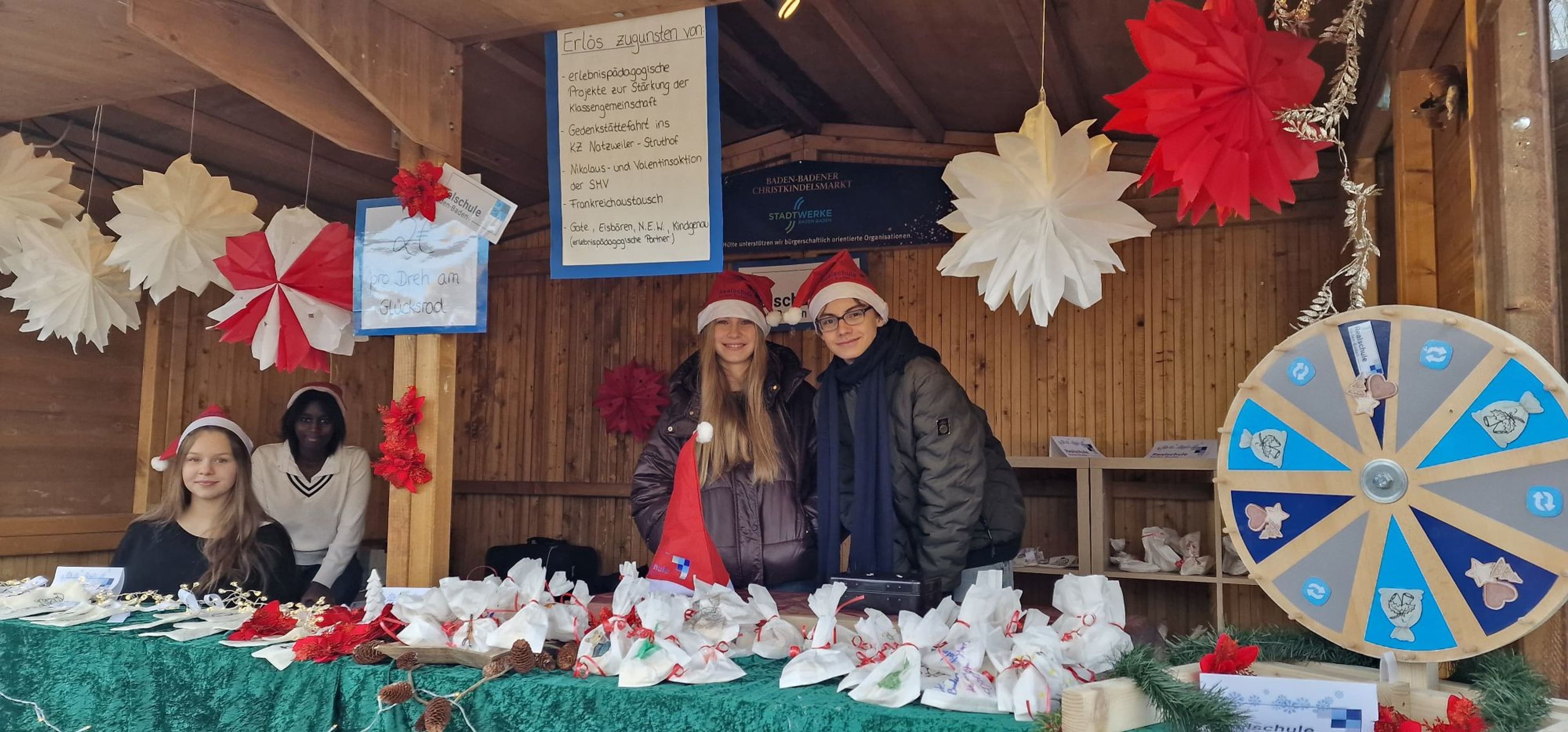 Schüler verkaufen Plätzchen und Kunsthandwerk – 521,88 Euro für Schulprojekte gesammeltDie Realschule Baden präsentierte sich dieses Jahr mit einem eigenen Stand auf dem Baden-Badener Christkindelsmarkt und begeisterte zahlreiche Besucher. 23 Schülerinnen und Schüler boten selbstgebackene Plätzchen, kunstvoll gestaltete Baumwollsäcke und ein selbstgebautes Glücksrad an, das für viel Aufmerksamkeit sorgte. Die Einnahmen von 521,88 Euro kommen vollständig dem Förderverein zugute und unterstützen zukünftige Schulprojekte. Die Schule dankt allen Beteiligten und freut sich auf weitere gemeinsame Aktionen.