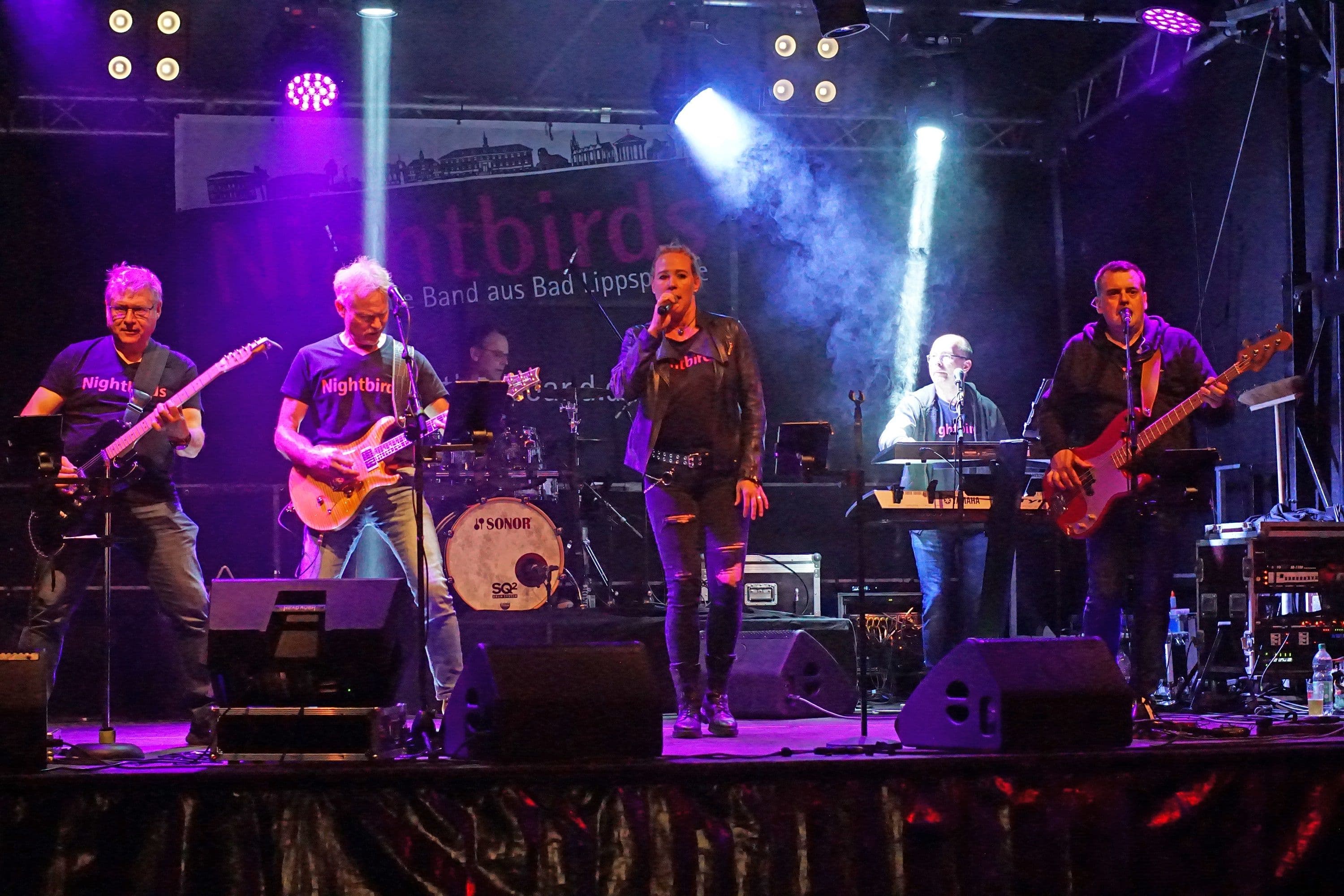 Die „Nightbirds“, eine lokale Band aus Bad Lippspringe, sind bekannt für ihre vielseitigen Performances, die von Rock über Pop bis hin zu Soul und Funk reichen und stets für eine begeisternde Stimmung sorgen.