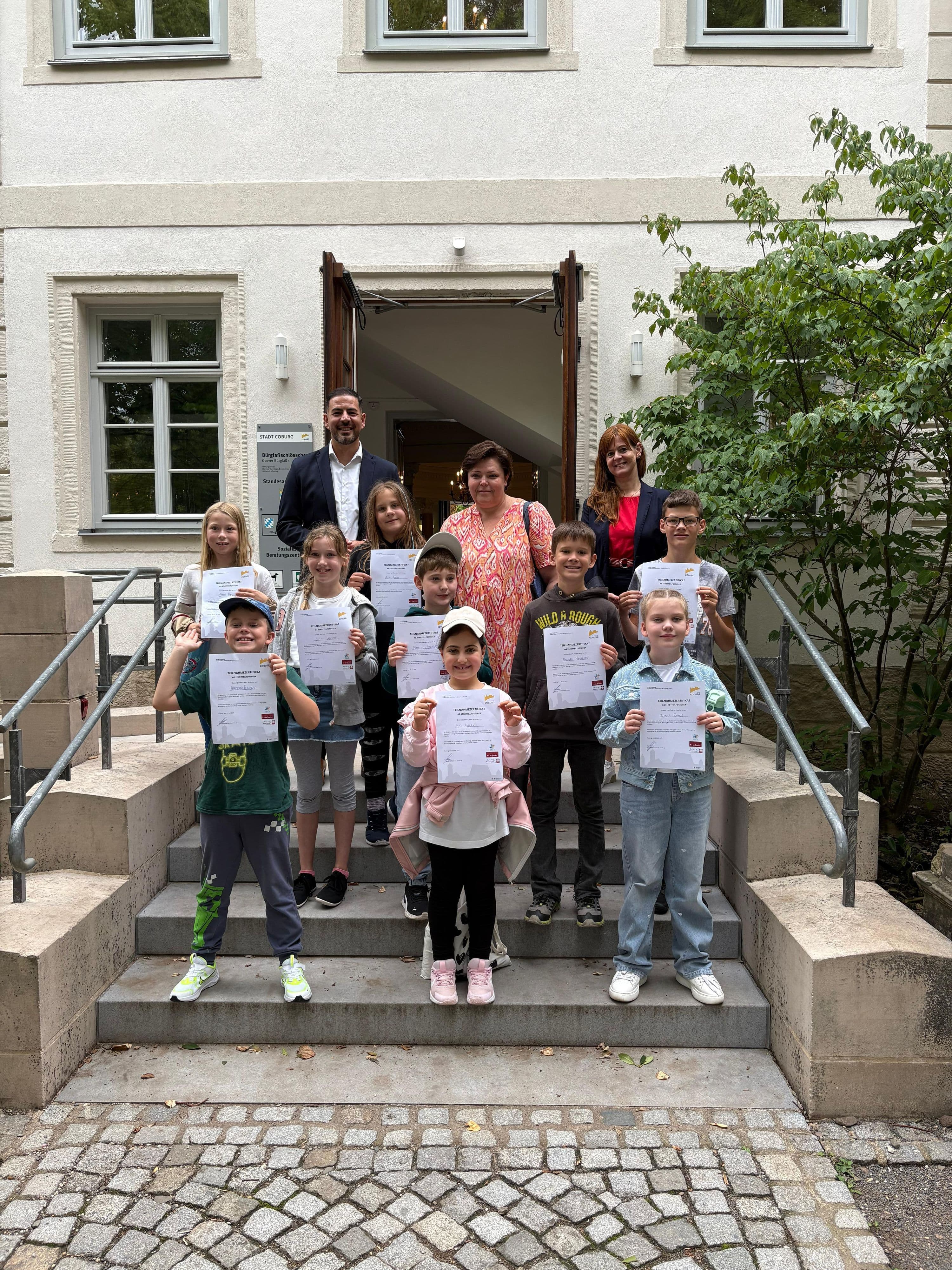 Grundschule Coburg-Creidlitz fördert mit Forschungsprojekt demokratisches EngagementDie Grundschule Coburg-Creidlitz hat ihre Schülerinnen und Schüler im Rahmen eines Stadtteilforschungsprojekts über mehrere Wochen zu aktiven Mitgestaltern ihres Umfelds gemacht. Dabei sammelten die Kinder Daten, entwickelten eigene Ideen und präsentierten diese. Bei einer feierlichen Veranstaltung wurden die Teilnehmenden von Bürgermeister Can Aydin, einer Vertreterin der Caritas sowie der Leiterin der Stabsstelle Demografie, Bildung und Familie ausgezeichnet. Das Projekt verdeutlicht, wie Kinder frühzeitig Verantwortung übernehmen und gelebte Demokratie erleben können.