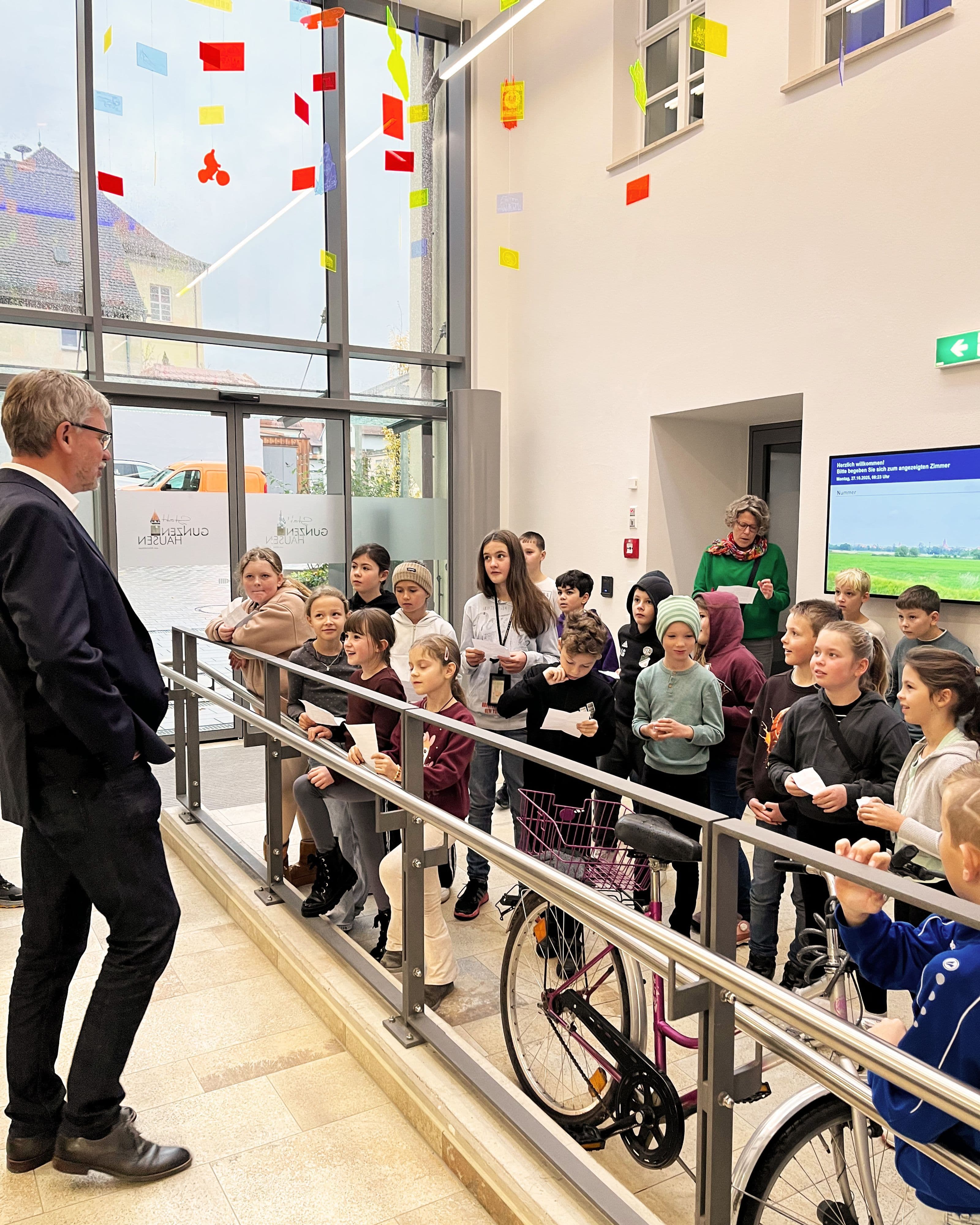 85 Viertklässler der Stephani-Schule erleben Stadtverwaltung und stellen Bürgermeister Fragen zur Schul-SanierungRund 85 Viertklässler der Stephani-Schule besuchten das Gunzenhäuser Rathaus und bekamen an verschiedenen Stationen Einblicke in die Arbeit der Stadtverwaltung. Höhepunkt war eine Fragerunde mit Bürgermeister Karl-Heinz Fitz, bei der die Kinder insbesondere die Sanierung ihrer Schule interessierte. Die Führung führte zudem vom Standesamt über das Einwohnermeldeamt bis zum Bauamt. Der Bürgermeister betonte den Wert des Besuchs als praxisnahen Erlebnisunterricht, der früh das Interesse an Demokratie und kommunaler Mitgestaltung fördert.