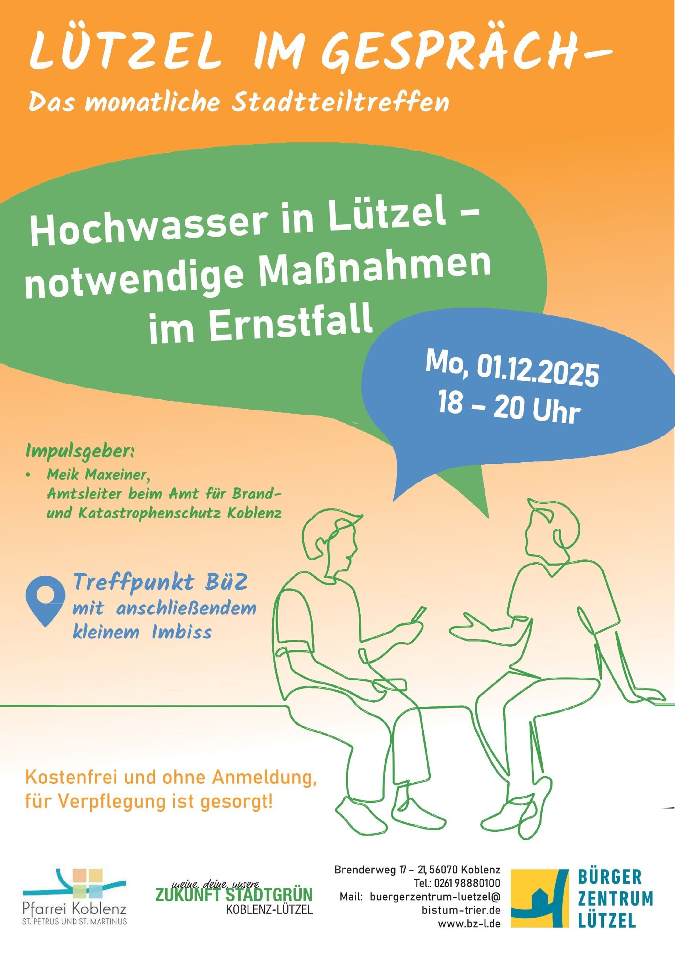 Informationsabend am 1. Dezember in Lützel klärt über Schutzmaßnahmen und Verhalten bei Hochwasser aufFür Koblenz wird ein Rheinpegel von über 8,75 Metern prognostiziert, was den Hochwasserschutz in den Stadtteilen Lützel und Neuendorf erneut in den Fokus rückt. Die Schutzwand hält bei diesem Pegelstand, doch viele Bewohner haben keine persönliche Erfahrung mit solchen Extremereignissen. Am 1. Dezember um 18 Uhr findet im Bürgerzentrum Lützel ein Informationsabend mit Branddirektor Meik Maxeiner statt, der über Maßnahmen und Verhaltensregeln im Hochwasserfall informiert. Die Veranstaltung bietet zudem Raum für Fragen und Austausch, eine Anmeldung ist nicht erforderlich.