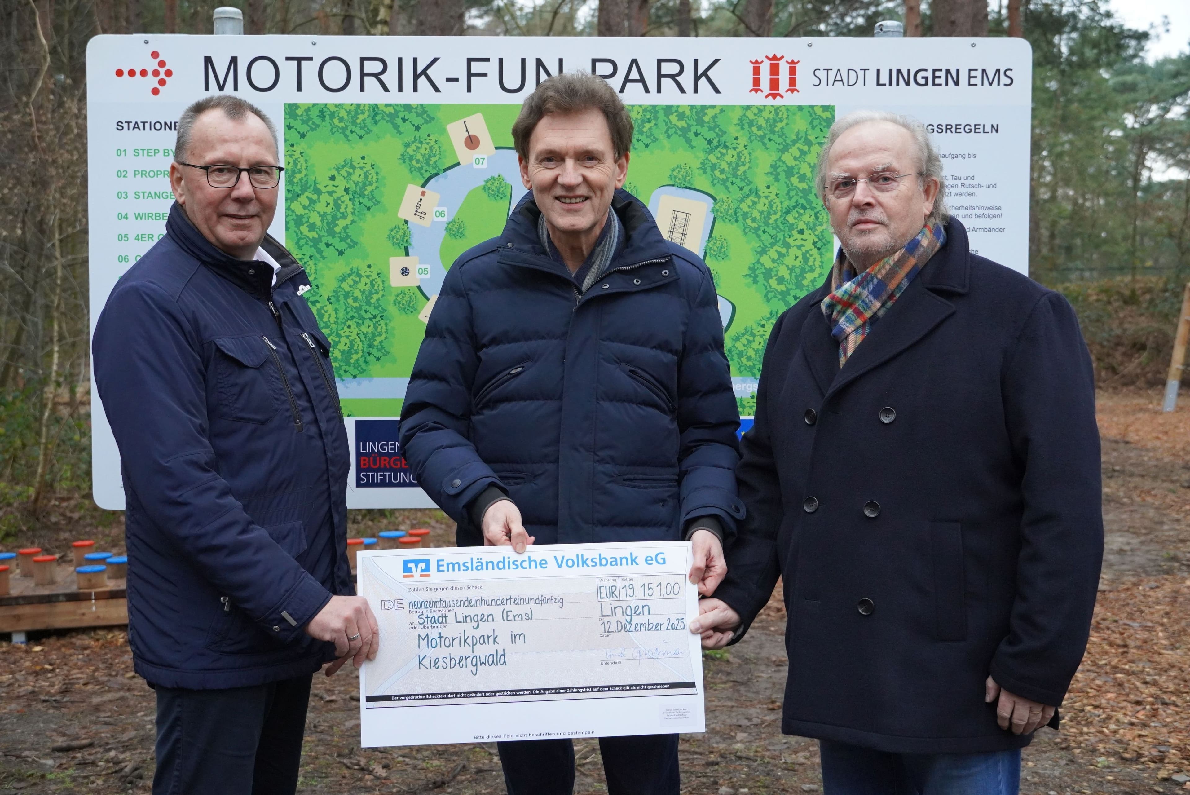 Bürgerstiftung fördert kostenlose Bewegungsangebote für alle Generationen im KiesbergwaldDie Bürgerstiftung hat dem Motorik-Fun-Park im Lingener Kiesbergwald 19.151 Euro gespendet, um kostenlose Bewegungsangebote für alle Generationen zu fördern. Mit zahlreichen Stationen unterstützt der Park Gleichgewicht, Geschicklichkeit, Kraft und Koordination und lädt zu aktiver Freizeitgestaltung ein. Oberbürgermeister Dieter Krone würdigte die Spende als wichtigen Beitrag für Zusammenhalt und Gemeinschaft in der Stadt. Die Bürgerstiftung betont, dass der Park ein Beispiel für nachhaltiges bürgerschaftliches Engagement ist, das langfristig der gesamten Stadtgesellschaft zugutekommt.