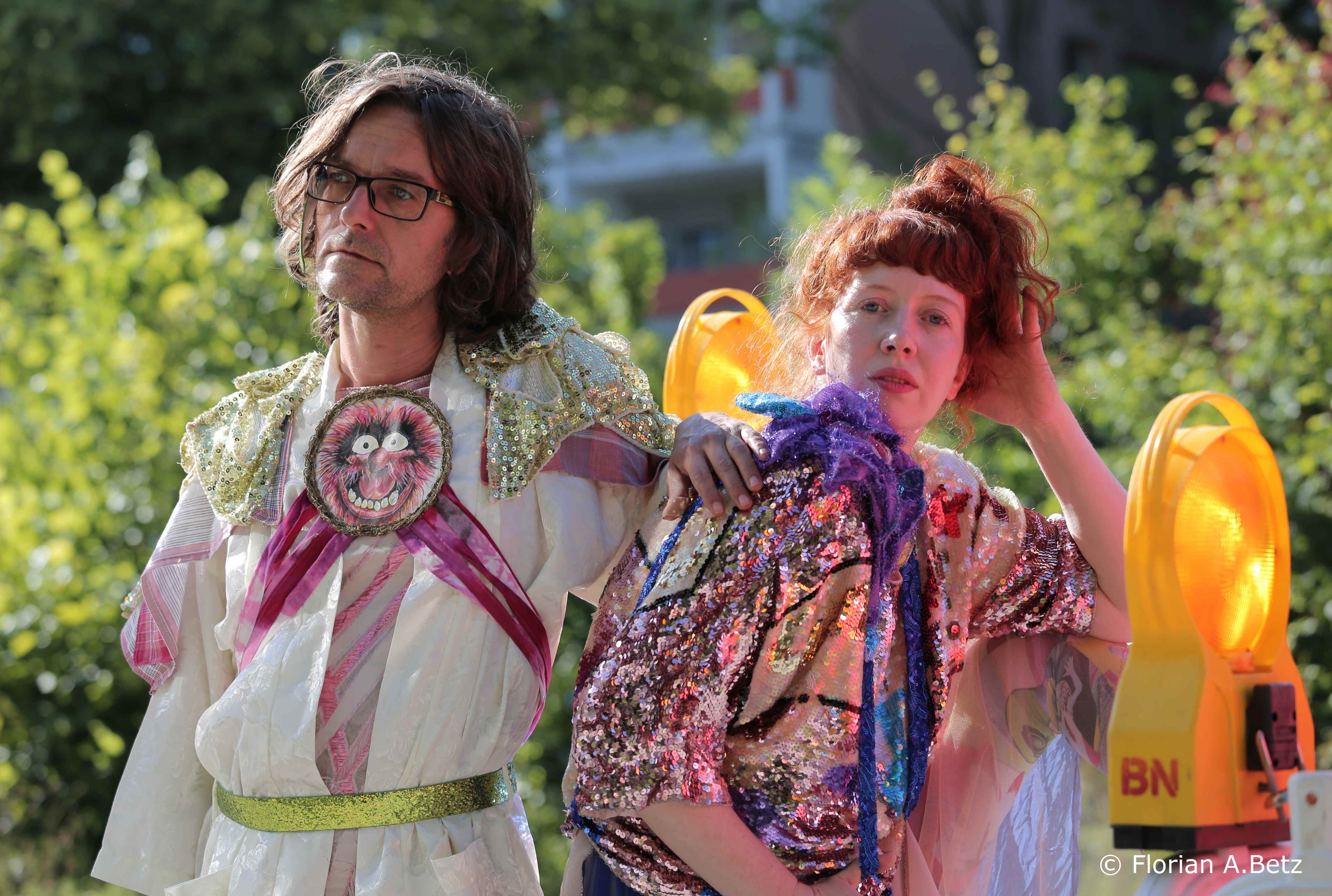 Klaus Erika Dietl und Stephanie Müller, die Künstler*innen vom Münchner Duo "Mediendienst Leistungshölle", interessieren sich für den öffentlichen Raum als Begegnungs- und Reibungsfläche. Dietl hat Malerei und Kunsttheorie studiert und setzt sich zunehmend mit dem Bewegtbild auseinander. Müller verbindet bildende Kunst, experimentelle Mode, Performance, Musik und Sozialwissenschaften. Ihr Studium der Kommunikationswissenschaft, Soziologie und Psychologie folgte das Aufbaustudium "Bildnerisches Gestalten und Therapie".