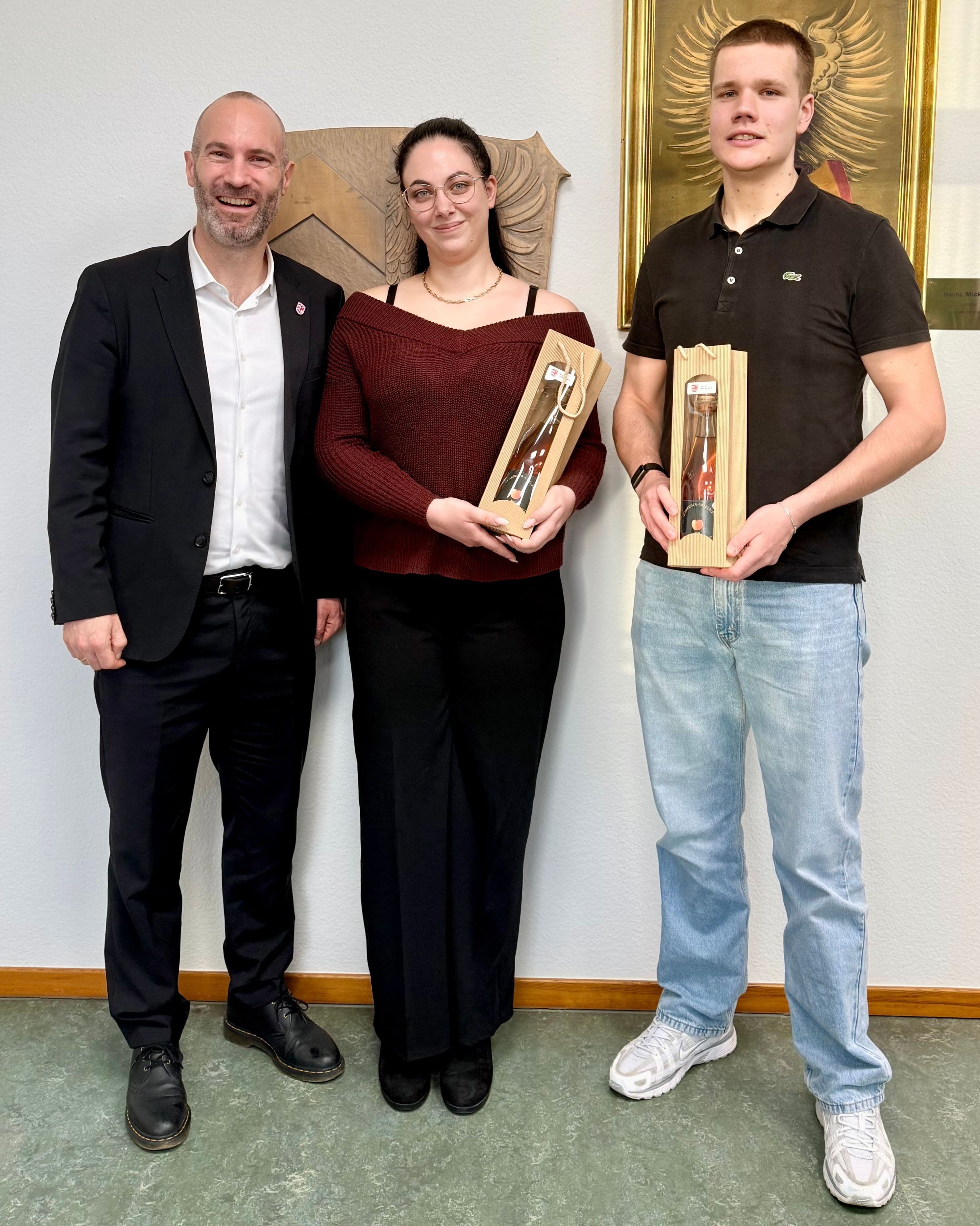 Drei junge Talente überzeugen bei der IHK-Prüfung 2025 und engagieren sich gesellschaftlichDrei junge Menschen aus Nidderau erzielten im Rahmen der IHK-Abschlussprüfung 2025 mit der Traumnote „sehr gut“ herausragende Ergebnisse und zählen zu den besten Prüflingen im Main-Kinzig-Kreis. Die Stadt würdigt ihre Leistungen und ihr gesellschaftliches Engagement, wie das Beispiel von Parsons zeigt, der neben seiner Ausbildung bei Heraeus aktiv in der Feuerwehr ist. Bürgermeister Andreas Bär betont die Vorbildfunktion der Absolventen für die junge Generation und die Bedeutung gezielter beruflicher Ausbildung für die Region.