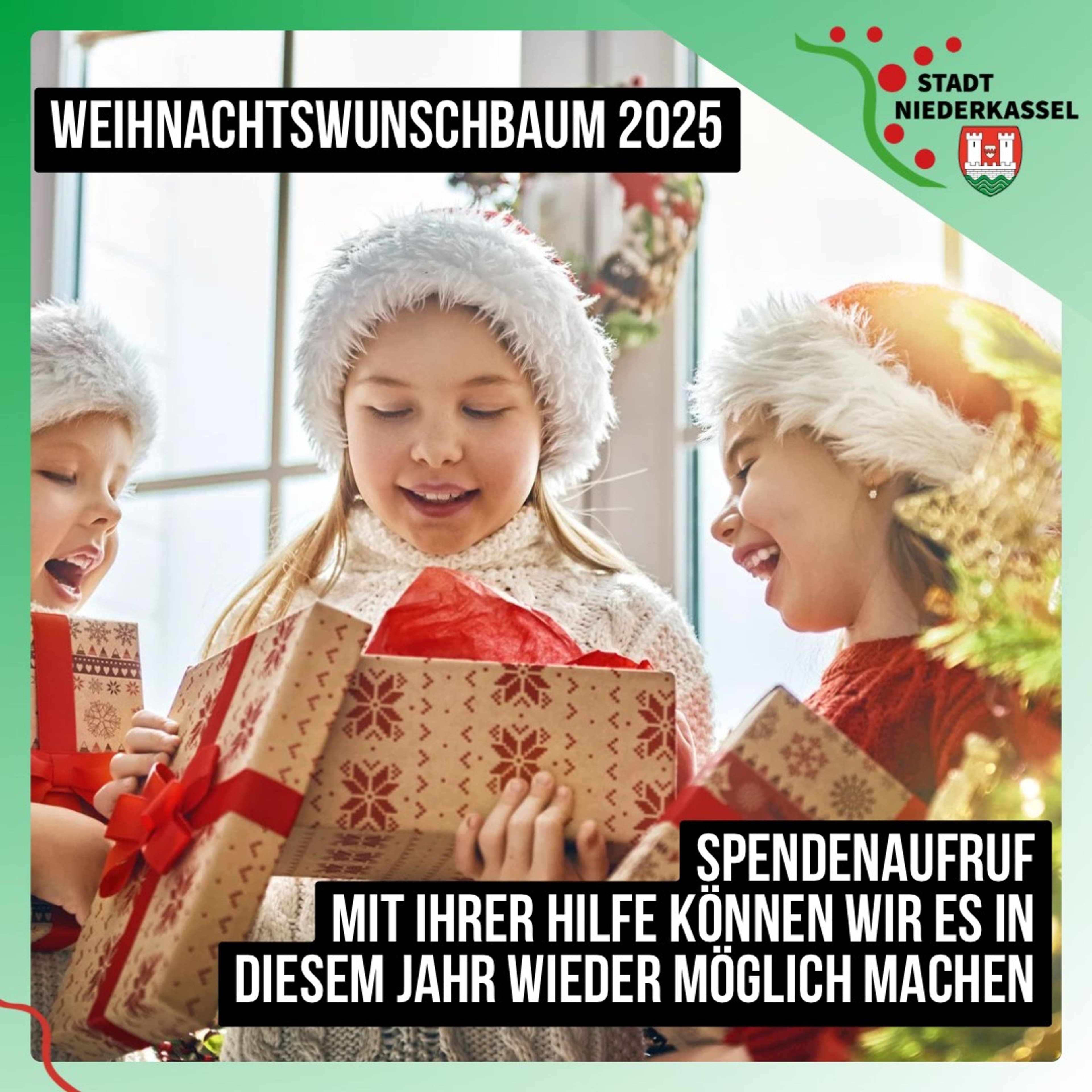 Die Stadt Niederkassel lädt Bürgerinnen und Bürger ein, mit der traditionellen Weihnachtswunschbaumaktion Kindern aus finanziell belasteten Familien eine Freude zu machen. Bereits im vergangenen Jahr konnten 425 Wünsche erfüllt werden, dank der Unterstützung durch Geldspenden und Gutscheine lokaler Geschäfte.