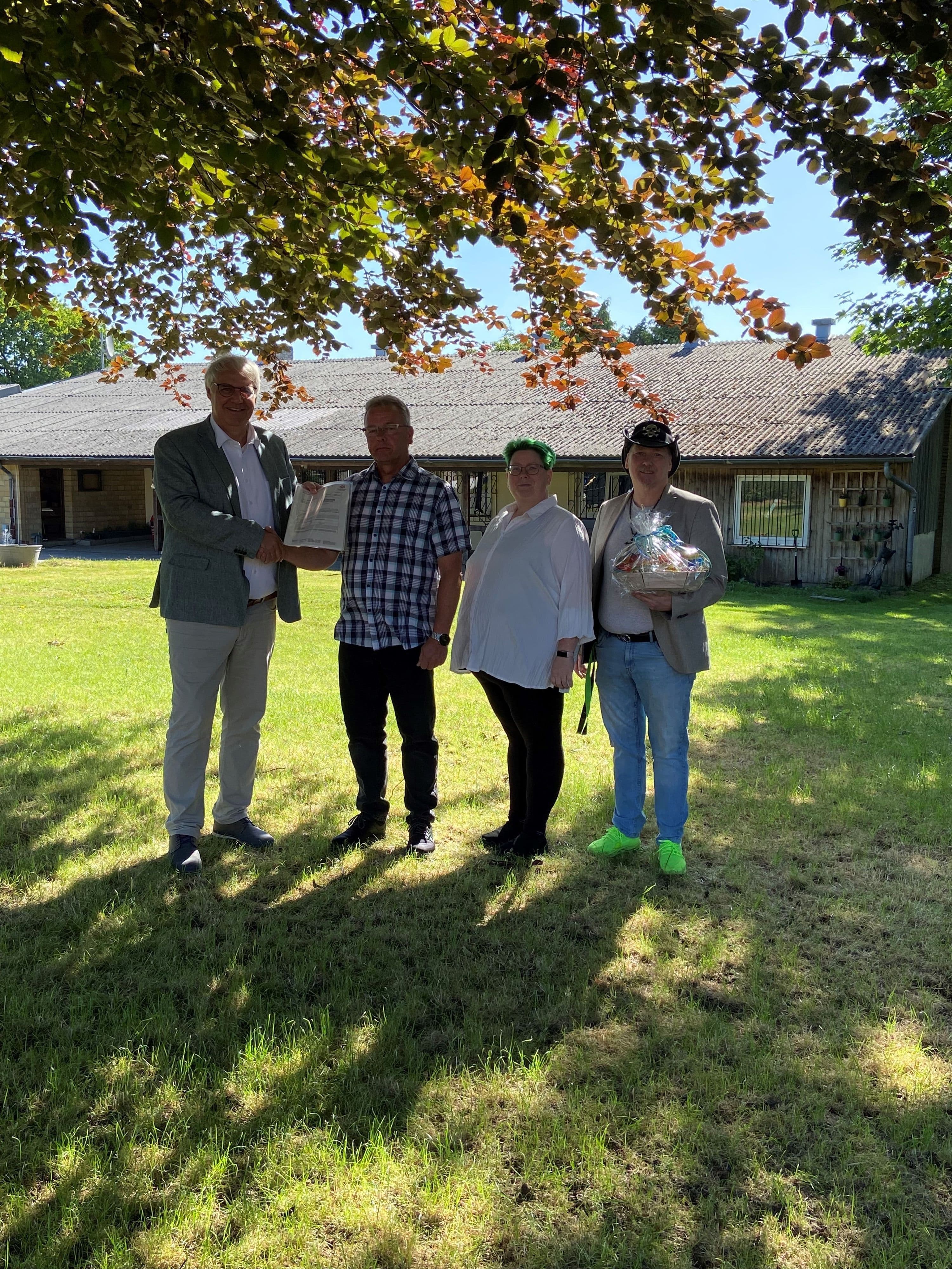 Die Stadt Schleswig hat am 30. Juni 2025 die Nutzungsfreigabe für das Projekt „Krögers Heimat“ im Kattenhunder Weg 40 erteilt. Bürgermeister Stephan Dose übergab die Genehmigung an Matthias Foth vom Verein Gartenfreunde e. V., der das Vorhaben als Bauherr maßgeblich vorantreibt.