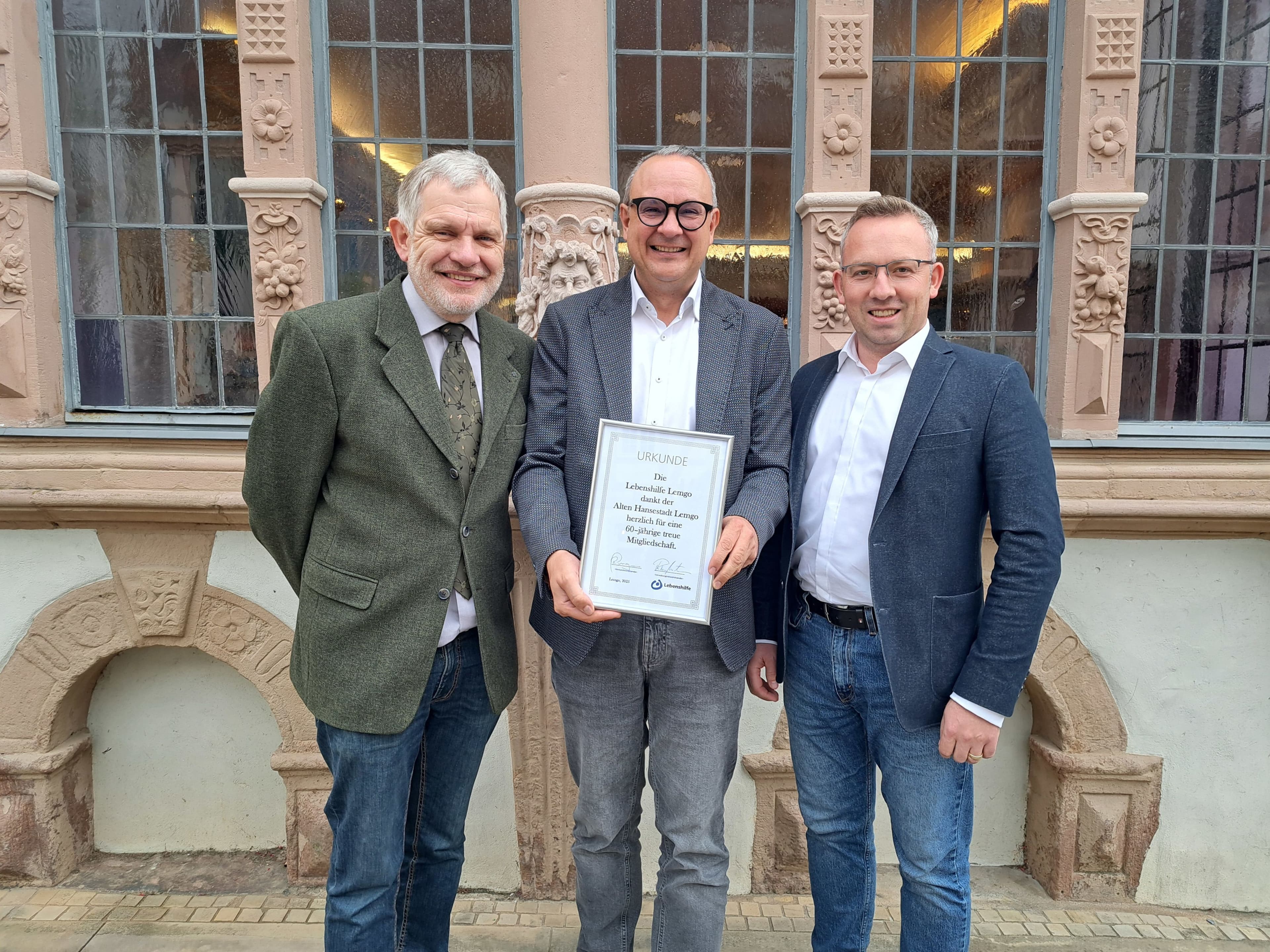 Bürgermeister Markus Baier erhält Urkunde für langjähriges Engagement in Inklusion und gesellschaftlicher TeilhabeDie Alte Hansestadt Lemgo feiert 60 Jahre Mitgliedschaft bei der Lebenshilfe Lemgo und würdigt damit ihr langjähriges Engagement für Inklusion und gesellschaftliche Teilhabe. Bürgermeister Markus Baier erhielt anlässlich des Jubiläums eine Urkunde von den Vorstandsmitgliedern der Lebenshilfe. Die partnerschaftliche Zusammenarbeit soll weiterhin aktiv fortgesetzt werden, um die gleichberechtigte Teilhabe aller Menschen zu fördern.