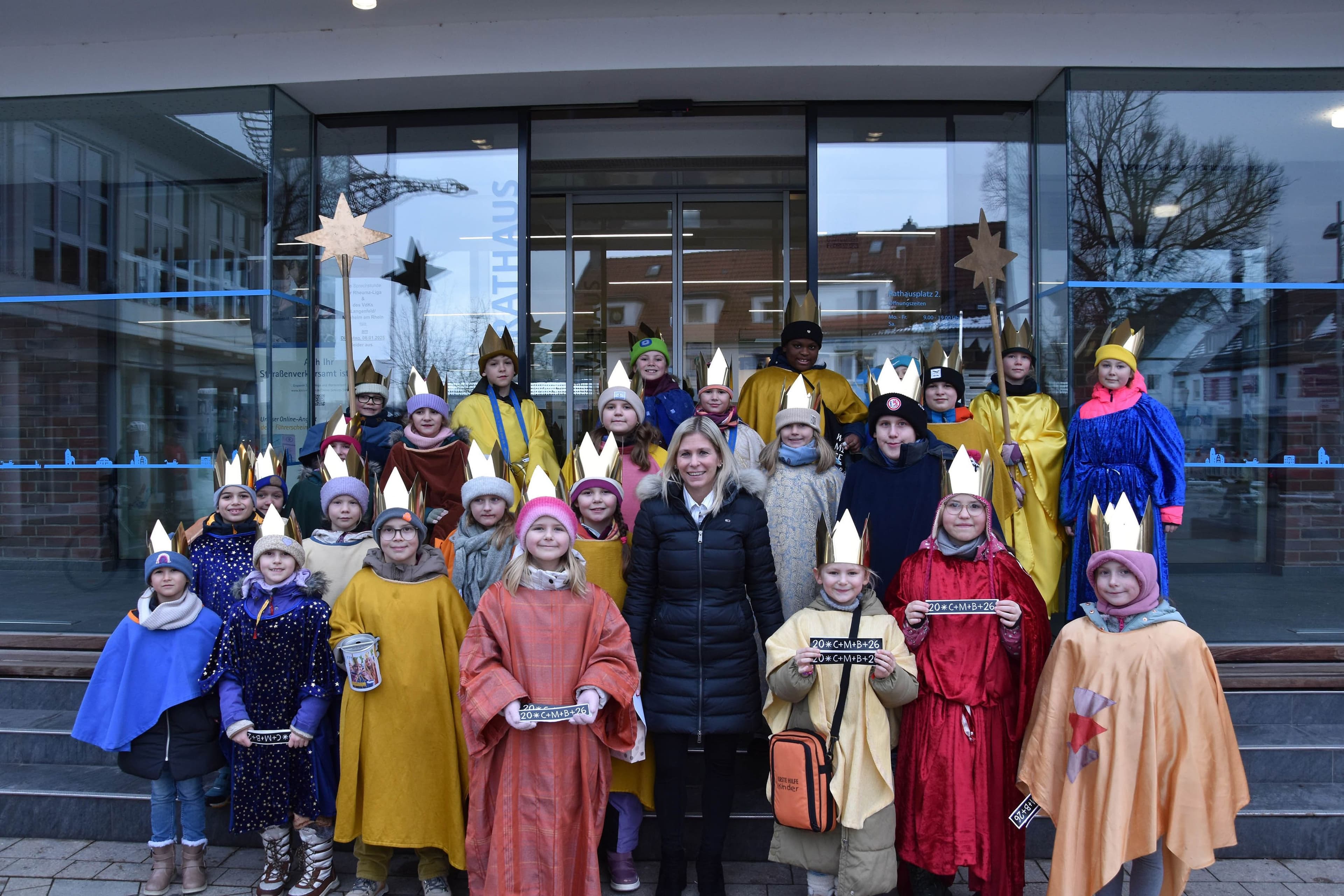 Monheimer Kinder sammeln Spenden für Bildung in Bangladesch – Bürgermeisterin empfängt sie im RathausAm 8. Januar zogen 32 verkleidete Kinder des Offenen Ganztags der Lottenschule als Sternsinger vor das Rathaus in Monheim am Rhein, wo Bürgermeisterin Sonja Wienecke sie persönlich empfing und das Rathaus segnen ließ. Die Aktion steht unter dem Motto „Schule statt Fabrik – Sternsingen gegen Kinderarbeit“ und setzt sich für Bildungszugang von Kindern in Bangladesch ein, die sonst oft ausbeuterischer Kinderarbeit nachgehen. Nach dem Rathausbesuch gingen die Sternsinger zu weiteren Stationen in Schulen, Kitas, privaten Haushalten und Senioreneinrichtungen, begleitet von der Chance, die Aktion bis zum 2. Februar in der Bücherstube von Linda Rossbach mit einer Spende zu unterstützen.