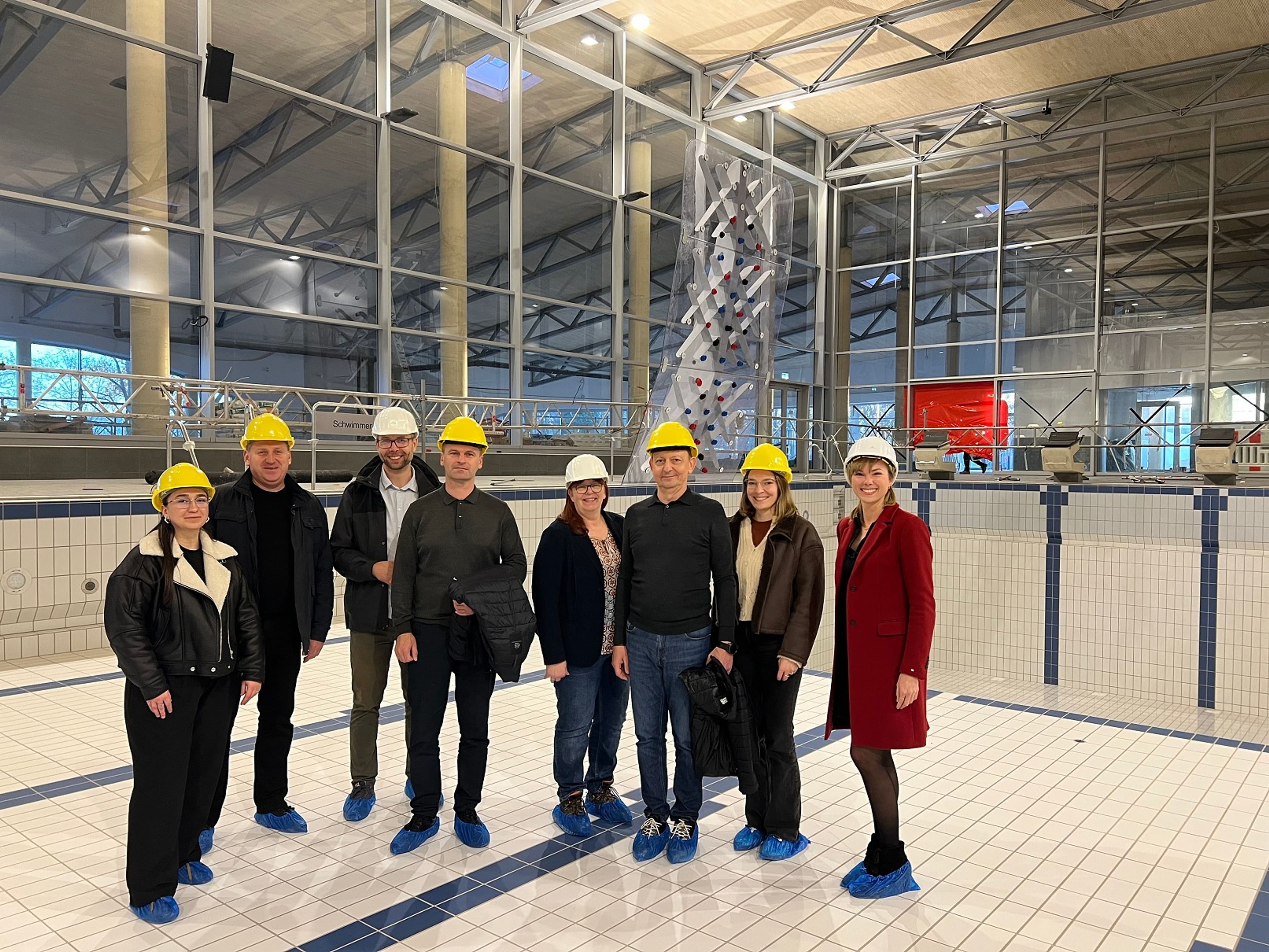 Delegation besucht Monheim am Rhein, um nachhaltige Modernisierungen und technische Verbesserungen zu diskutierenEine vierköpfige Delegation aus Volodymyr besuchte Monheim am Rhein, um Erfahrungen zur Sport- und Schwimmbad-Infrastruktur auszutauschen. Unterstützt durch Engagement Global wurden in Volodymyr bereits Modernisierungen wie Wärmepumpen, ein Rollstuhllift und eine mobile Rampe realisiert. Vor Ort informierte das Schul- und Sportbüro über den Betrieb städtischer Sporthallen, und Experten diskutierten gemeinsam mit der Delegation über technische und strategische Verbesserungen. Der Besuch stärkt die Zusammenarbeit zwischen den Städten und fördert nachhaltige kommunale Entwicklung.
