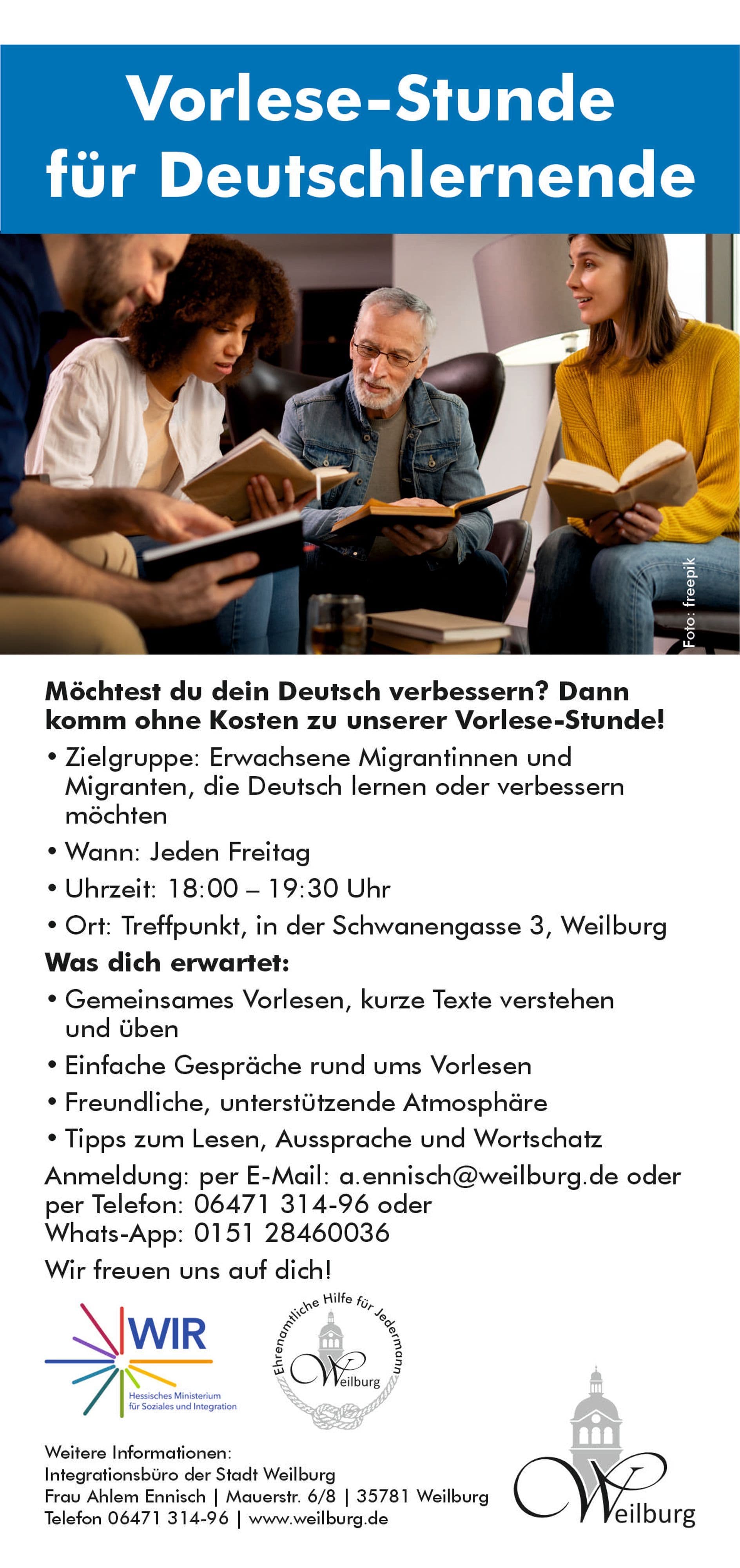Das Integrationsbüro der Stadt Weilburg hat zwei neue Programme gestartet, die den Austausch zwischen Migrantinnen, Migranten und Einheimischen fördern. Ziel ist es, Begegnungen zu schaffen, die zu mehr Verständnis und Inklusion beitragen. Ansprechpartnerin für weitere Informationen ist Ahlem Ennisch, Sachbearbeiterin im Integrationsbüro.