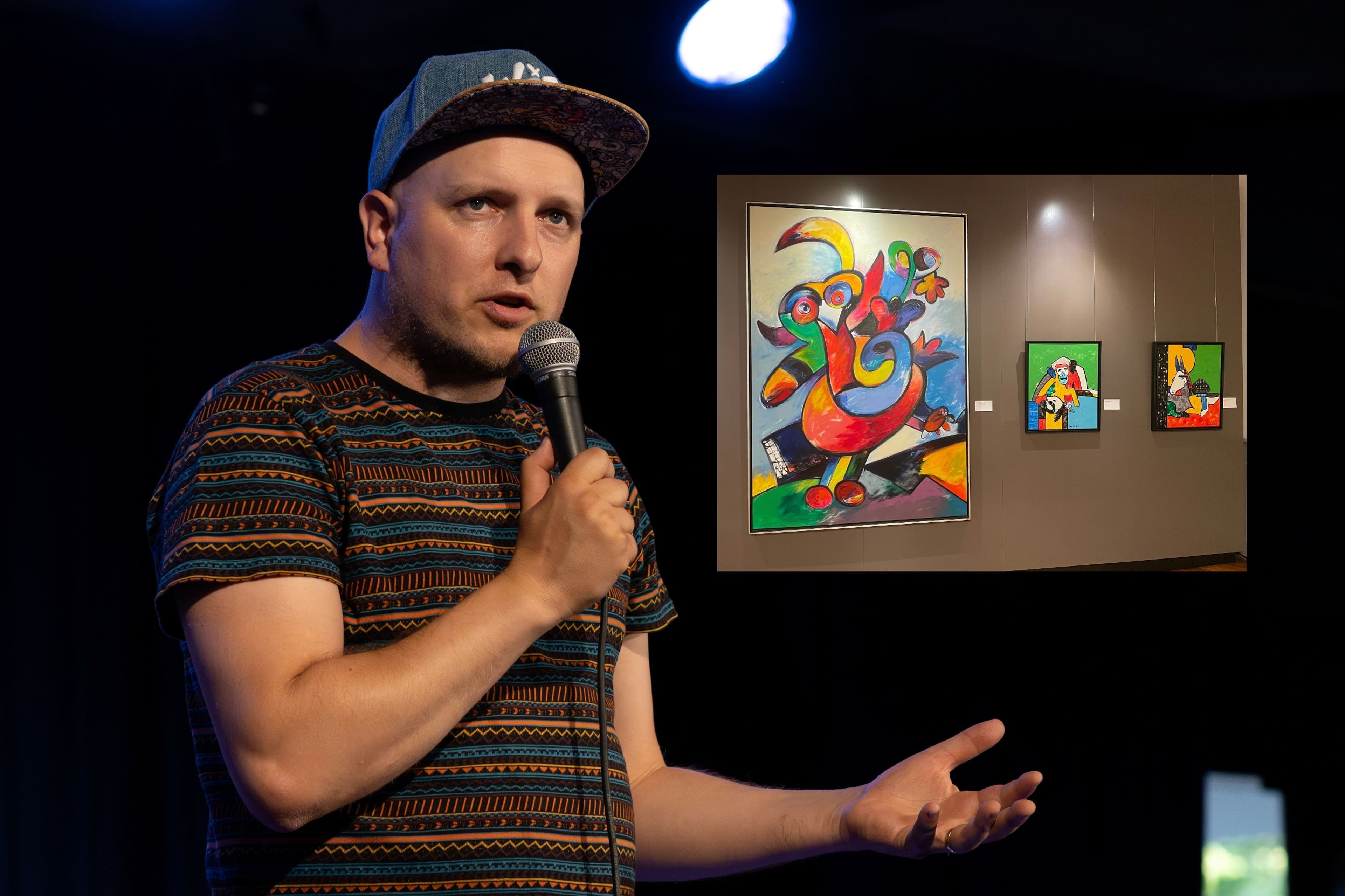 Das Bild, welches die Stadt zur Verfügung gestellt hat, zeigt Ansgar Hufnagel während einer Performance, umgeben von Ausstellungsstücken. Dies deutet darauf hin, dass die Besucher nicht nur klassische Führungen erwarten, sondern ein interaktives Erlebnis, bei dem Poesie und Kunstwerke miteinander verwoben werden.