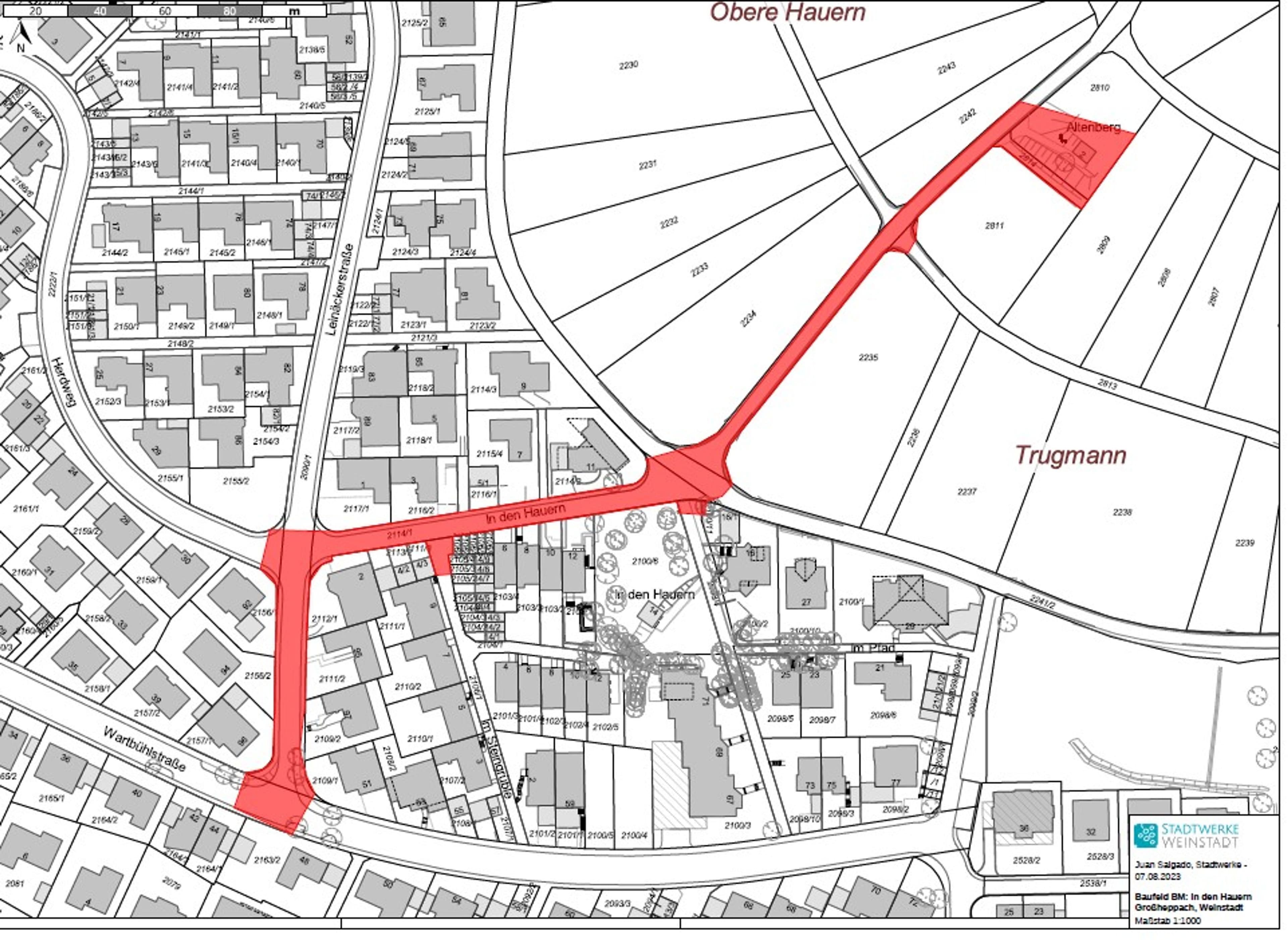 - Baufeld: Kreuzung Wartühlstraße / Leinäckerstraße im Bereich „Den Hauern“