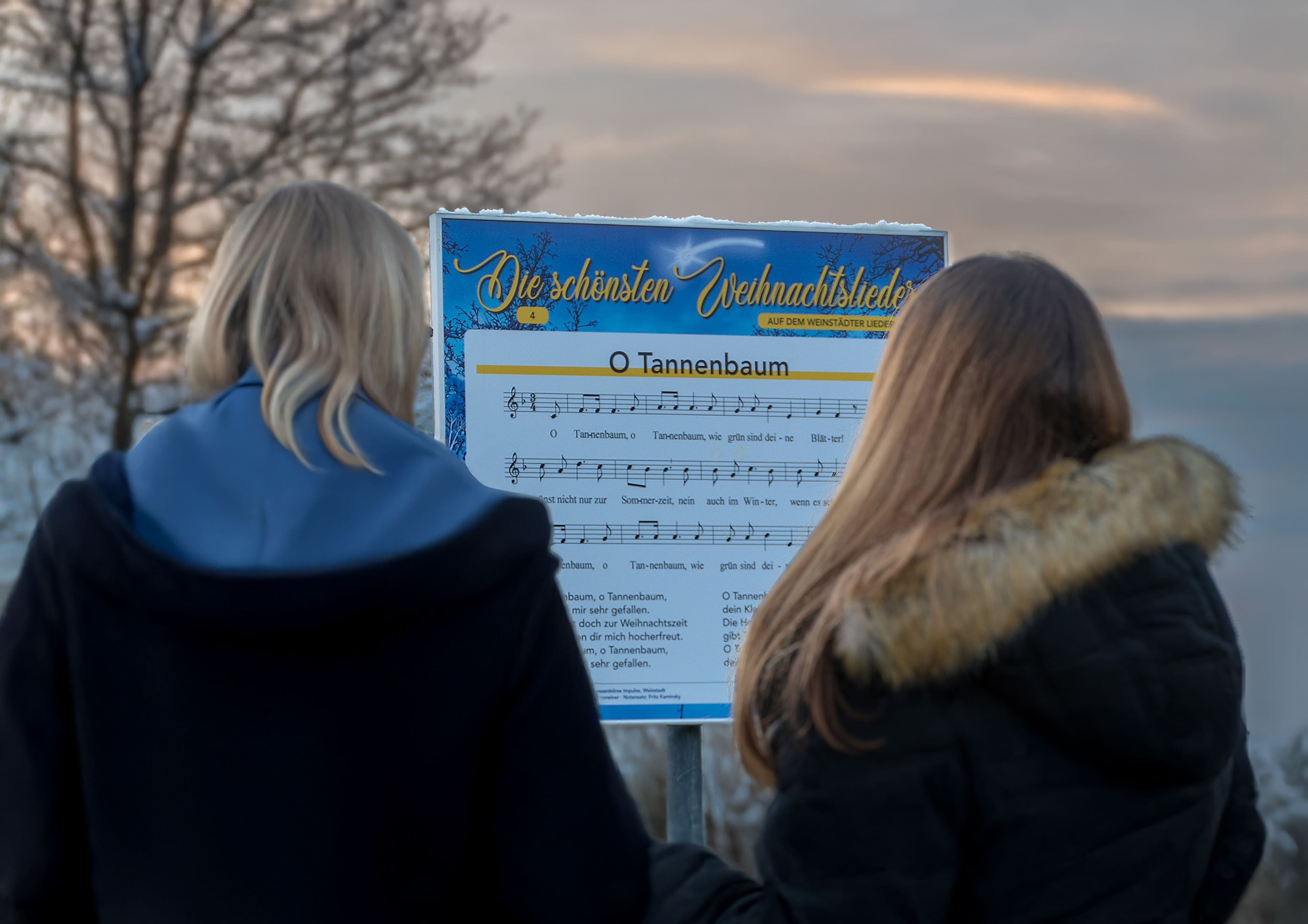 Vom 30. November bis 6. Januar können Besucher auf einem 6 km langen Rundweg 15 Tafeln mit Weihnachtsliedern entdecken und gemeinsam singenWeinstadt lädt zum Weihnachtsliederweg 2025 ein