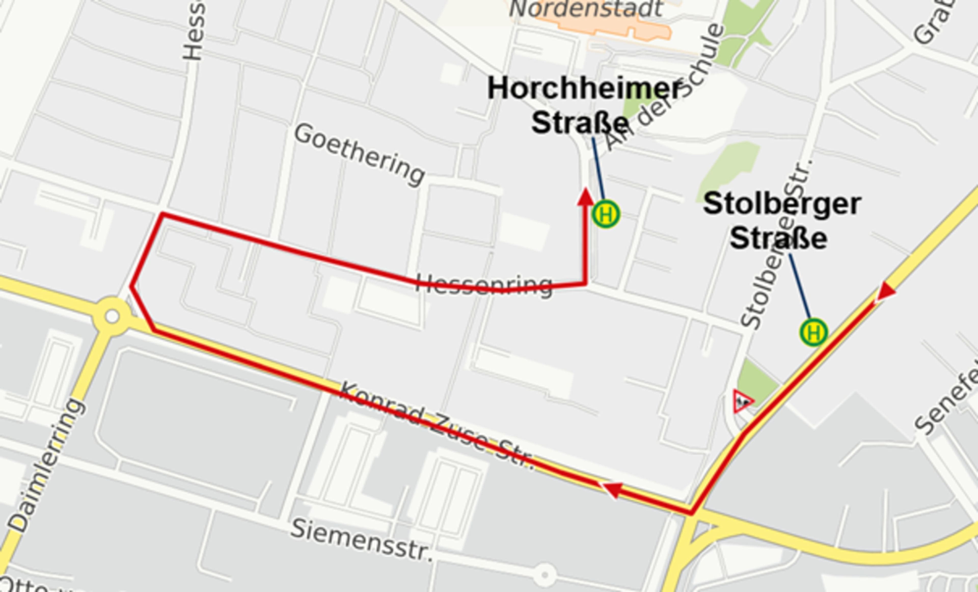 Buslinien 23, 43, 46 und N2 fahren Umleitungen – Fahrgäste sollten mehr Zeit einplanenWegen einer Sperrung des Hessenrings in Wiesbaden kommt es von Dienstag, 2. Dezember, bis voraussichtlich Montag, 15. Dezember, zu Umleitungen bei den Buslinien 23, 43, 46, N2 sowie bei Schulbussen. Im Innenstadtbereich fahren die betroffenen Linien ab „Stolberger Straße“ über den Hessenring bis zur Haltestelle „Horchheimer Straße“. In Richtung Westring, Delkenheim und Hochheim bleibt die Linienführung unverändert.