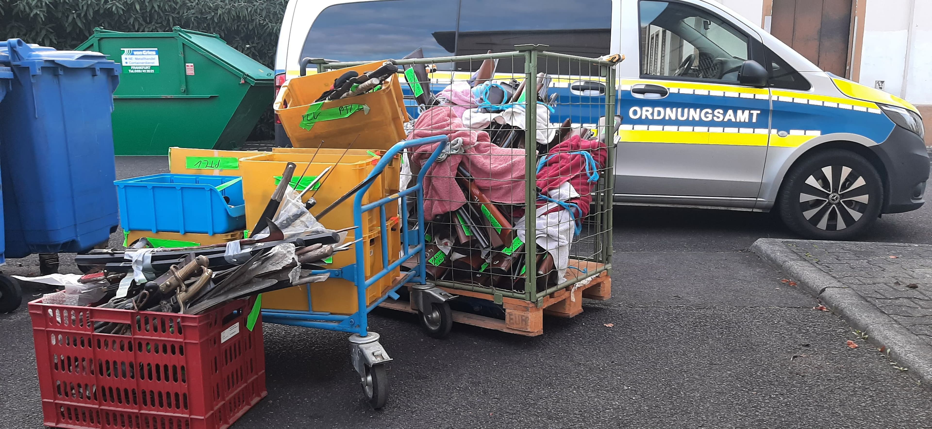 Schusswaffen, Messer und mehr aus Abgaben und Sicherstellungen werden aus dem Verkehr gezogenDie Landeshauptstadt Wiesbaden hat über 300 Schusswaffen sowie zahlreiche Messer, Schwerter und eine Axt vernichten lassen. Die Waffen stammen aus freiwilligen Abgaben, Sicherstellungen der Polizei und dem Fundsachenwesen. Die Aktion dient der öffentlichen Sicherheit, indem gefährliche Gegenstände dauerhaft aus dem Umlauf genommen werden. Bürgerinnen und Bürger können sich bei Fragen an das zuständige Dezernat der Stadt wenden.